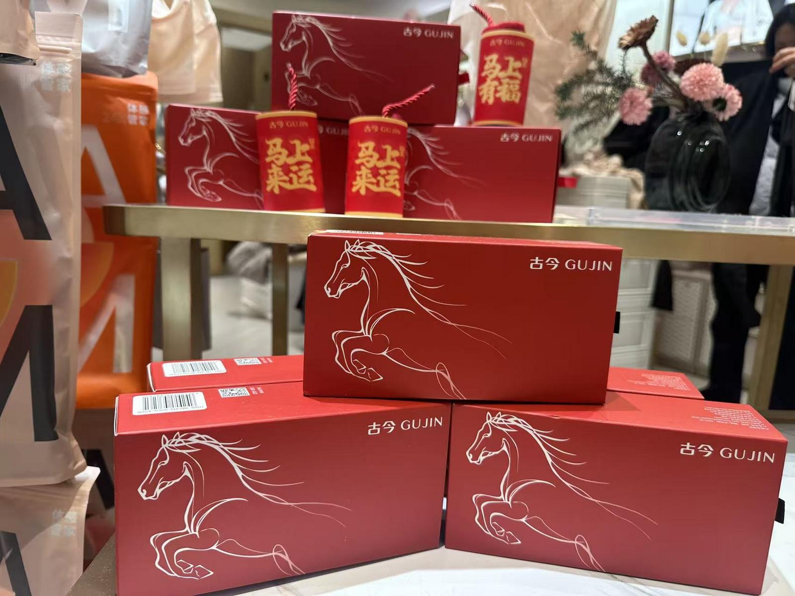 在A馆4楼的古今门店,印有“马上来运”的红色袜子和红色内裤成为柜台的“显眼包”,“中国人新年有穿红的习俗,尤其是即将本命年的市民,红色内衣是他们的必备品。”导购胡女士介绍。